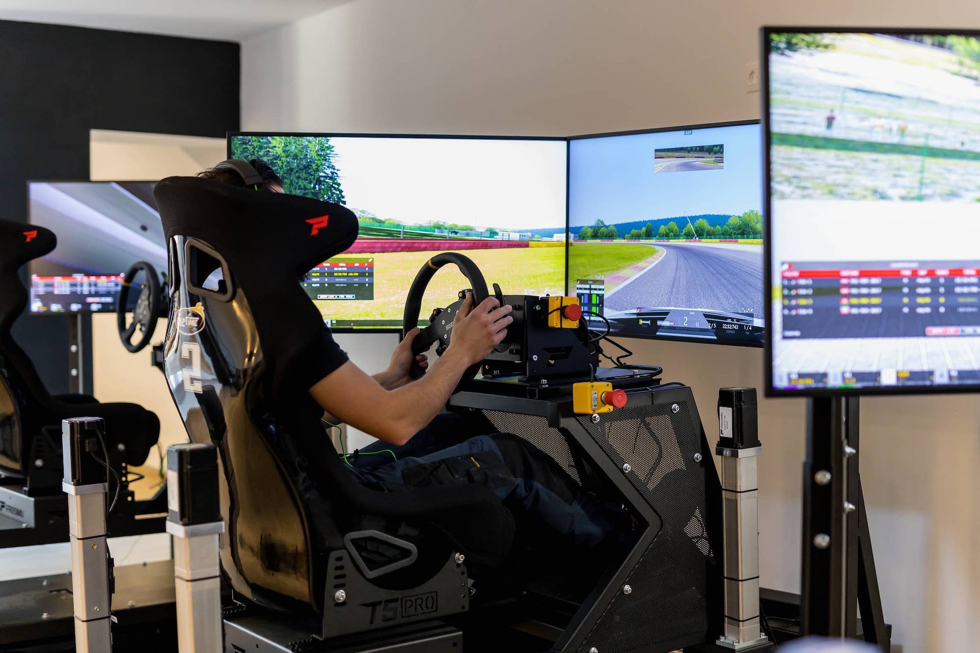 Un espace chaleureux et lumineux, parfait pour vivre l’expérience sim racing dans une ambiance familiale et raffinée.